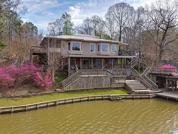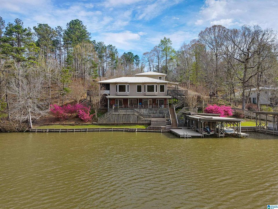 Lake Mitchell Party House is active and ready for new ownership. This home is full of space and will come furnished with acceptable offer. Unique design is a must see. Main level of home offers full open floor plan with large kitchen and living room open to one another....this space is just what any entertainer is looking for. Main level also offers master suite, 1 guest bedroom and guest bathroom plus laundry closet. Upstairs room is HUGE and offers enough space for multiple beds and a set of bunk beds with a full bath. Basement area is OPEN to full entertainment/media area, pool table and full bar. All appliances to remain. Outdoor living at this home is decks galore with tons of storage, Ive never seen so much storage in my life. There are 2 separate boathouses on this property, 1 offering 1 stall for pontoon boat and other boathouse offers 2 stalls 1 for ski boat and 1 for fishing boat. Outdoor shower adds character and is a must see. Bring the family and preview this NOW!