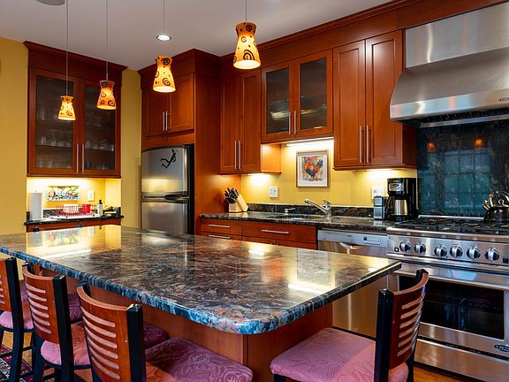 This beautiful historic Greek Revival gem is in the heart of East Cambridge and minutes from Kendall Square and MIT. This unique property retains many historic features such as original wood shutters, floor to ceiling windows, large pocket doors separating living and dining room with original marble mantels, wide pine floors, and gas fireplace. The newly renovated kitchen includes stainless appliances, beautiful large granite island that seats 6, and deck leading out to grilling/dining area with beautiful gardens and large mosaic dining table.The first floor includes a full bath (original claw leg tub with handheld shower), and washer/dryer. The second floor has two large bedrooms with lots of windows, one with a queen and the other with full bed and and twin bed, and renovated bathroom with slate floor and shower. The third floor includes a newly constructed master suite with king bed, Soshi doors separating bedroom from study/TV room with sleep sofa, luxury bathroom and private deck. Tenant responsible for utilities. 12/1 move-in date. 2 off-street parking spots included.