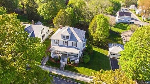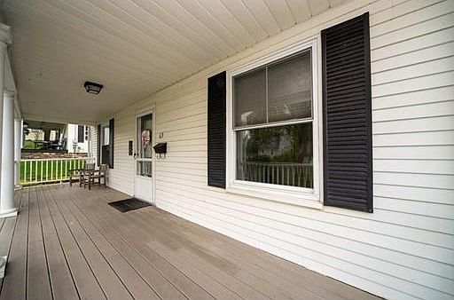 A beautiful historic building circa 1880, this stately 4 bed/2 bath Colonial stands proudly waiting for its new owner! Greeted by an inviting farmer's porch with low maintenance composite decking, the exterior also features a private spacious backyard and a detached two car garage. The house itself has a flowing floorplan with central staircase and gorgeous columns that unite the living room to the formal dining room. Family room or office features custom built-in shelving surrounding its walls and a wood burning fireplace. Mud room off the eat-in kitchen. Handsome hardwood flooring throughout most of the main level. Bright and sunny, natural light shines through the replacement windows. All four bedrooms on the second level are spacious. Original staircase banister, doorknobs, and Waterford light fixtures add to the charm of this beauty! Walk-up attic and full basement for abundance of storage. Desirable and central residential location. Not to be missed at this price!