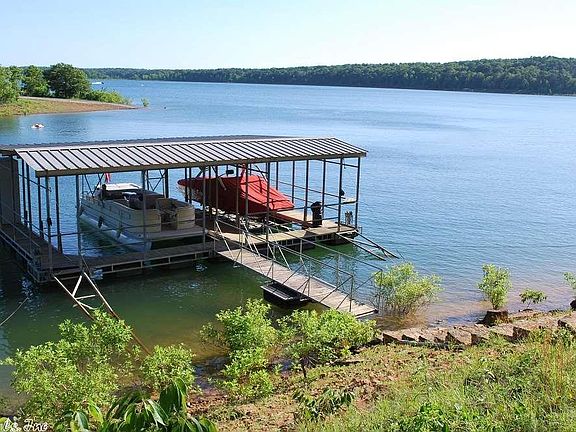 2 Stall Private Boat Dock with lift on Greers Ferry Lake. Located on nice cove at the end of the street! 4 BR, 3 BA, vaulted ceilings, new central AC unit 2018, roof shingles approx 9-10 years. Open living, dining, kitchen space with wood burning fireplace, vaulted ceiling & tile flooring. 3 BR's have access to back deck. Fantastic native stone fire pit area with seating. The perfect family weekend retreat!