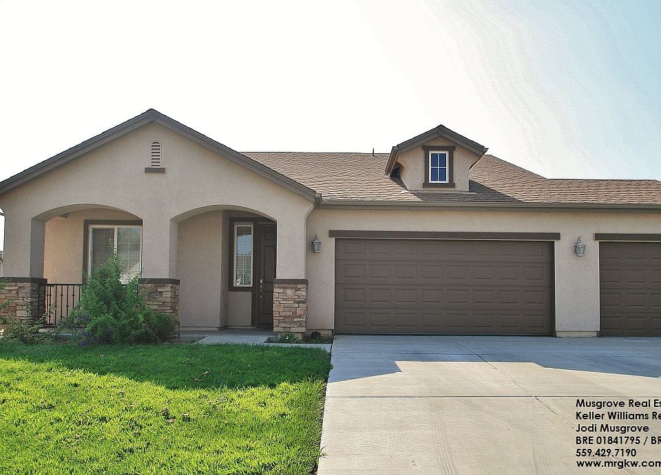 Beautiful arches, decorative metal rails, & stack stone on columns accentuate the front exterior. Create a space for yourself in this large open floor plan that offers 4 bedrooms & 3 car garage. Key Features: Beautiful cabinets ; Granite tile kitchen counter tops with decorative tile back splash ; Stainless steel appliances ; Kitchen island ; Pantry ; Pendant lights above island and chandelier in dining area ; Crown molding in kitchen & family room ; Fireplace ; Recessed lighting ; Pre-wired for ceiling fans ; Tile floors in entry and kitchen ; High ceilings ; Pre-wired for alarm system ; Raised panel interior doors with satin nickel hardware ; Spacious bedrooms ; Large concrete uncovered patio with built in fire pit ; Close to shopping and park ; Home is only 8 years old and on a corner lot.