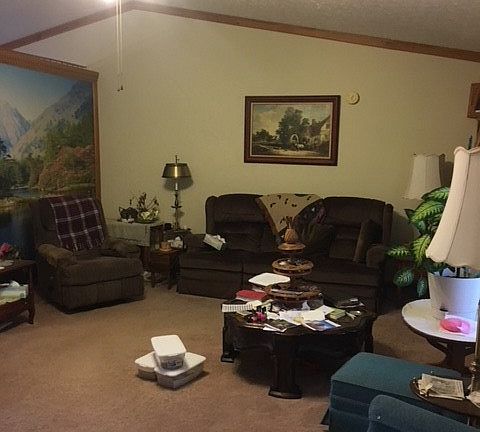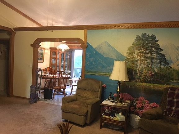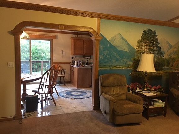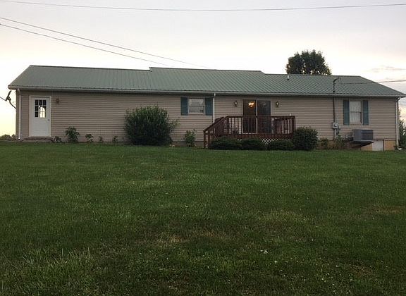 Well maintained ranch style house, 3 bedrooms, living room with cathedral ceiling & beautiful handmade wood crown moldings & wood trim, 2 full bathrooms, equipped kitchen, dining area with sliding glass doors leading to rear deck with beautiful views, covered front porch, 2 car attached garage, laundry area in closet in hallway, situated on 1.675 acres with lush landscaping. Take a look today!