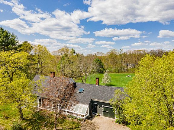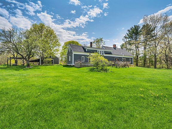 You will be proud to own a part of Lyman's History. This impressive 1880 cape offers all the charm of an antique home with modern day amenities, all sitting on 5 picturesque acre of fields. The entry foyer offers an impressive staircase, the front to back living room has wood floors, a wood burning fireplace as well as a wood stove and a large deck overlooking the back field. The 'country kitchen' is light and bright and opens to the large sunroom as well as a breakfast bar overlooking the field where you will often view deer and other wildlife and has 1st floor laundry hookup. Large 1st floor primary suite with adjoining bath offers large hearth for wood burning stove. The 2nd floor offers a flexible floor plan, 2 bedrooms with wood floors, as well as a large bonus room that has been used as a office, studio, playroom or game room. Detached barn that is used as a 2 car garage has plenty of storage space for garden or recreational toys.
