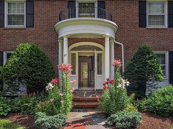 Classically-appointed, this Georgian Brick Colonial is both renovated & refined w/ neutral paint, sparkling wood floors, custom moldings, abundant natural light & a floor plan that works for today's modern living. Step thru, the charming vestibule & notice the turned staircase & wainscotted walls accenting a spacious foyer. On the left French doors open to a formal dining rm w/ double china cabinets. On the right, front to back living rm w/ traditional FP and French doors leadinf to a sunroom, or a perfect office. The heart of the home - the renovated kitchen, provides abundant cabinetry, granite countertops, SS high-end appliances, a huge center island, & sightlines to the cozy family rm w/ door to the private back patio. The 2nd floor offers 4 large BRs & 3 full baths, including master w/ renovated bath, great closets, & laundry in BR2 closet. L.Level offers family rm w/ FP, play rm, & exer. rm. Easy access to I-91 & the park is just across the street!