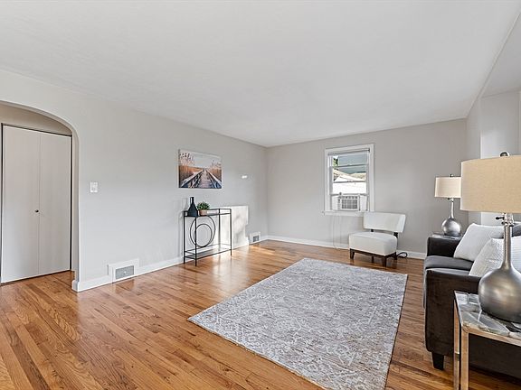 Move in ready to this 6 room 2 full bath Cape in spectacular condition. All rooms have been professionally painted with a beautiful range of pastel colors. Living room has refinished hardwood floors and a large picture window overlooking front yard. Kitchen includes quartz counters, updated spacious cabinets, all stainless steel appliances in an Eat-in area for morning coffee. Off the kitchen is a 3 season porch with new insulated windows and linoleum floor, overlooking private fenced in yard. First floor, laundry included with upright washer and dryer.Second floor has two additional spacious bedrooms and a full bath with tub and shower. Lower level basement area has family room with brand new carpeting and has freshly painted walls and ceiling. Newer Heating system and Hot Water Tank. 30 year architectural roof, Vinyl sided and insulated windows. A shed in the backyard for storage of tools and equipment.. This home is located in the heart of East Forest Park near Nathan Bill Park.