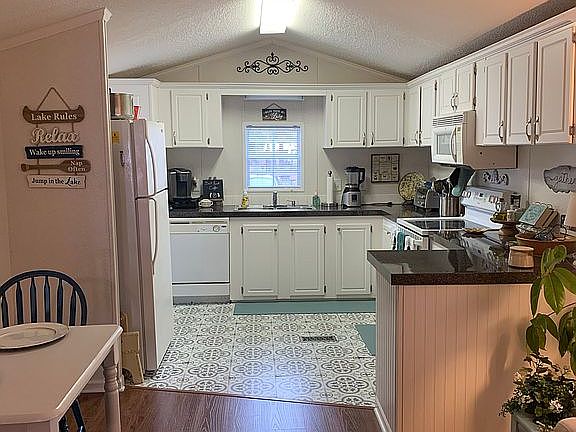 Beautiful home on flat lakefront lot! Enjoy lakefront living in this gated community with clubhouse, salt water pool, picnic and playground area. Home is immaculate and being sold furnished. Gorgeous lake views from your kitchen, bedroom and sunroom. Wood floors / large master with spacious closets/tall vanities/ open kitchen/ walk-in showers/ front porch/large newly rebuilt deck and new 100 ft dock with covered floating slip and composite board decking. Home can sleep up to 12. This is the perfect weekend getaway and so spacious that it could be your perfect full time retirement home. This home is located right across the street from the Clubhouse and pool . It’s the Perfect Location ! HOA dues are 110.50 per month which includes water , sewage , garbage and lawn maintenance .