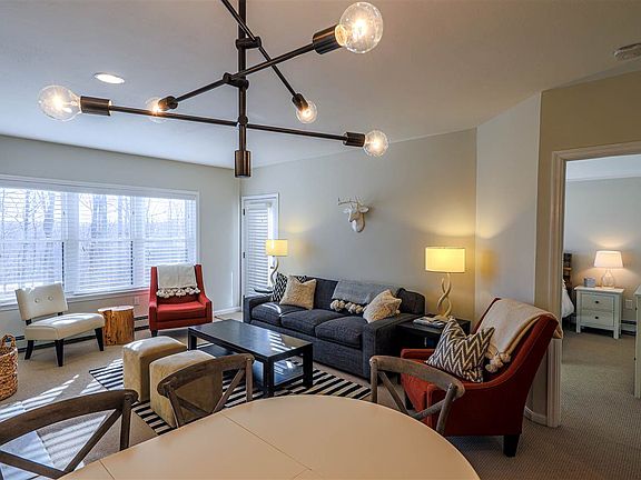 Ski out your back door! Nicely updated ground floor two bedroom unit on slopeside of building. Open living design includes kitchen with breakfast bar, wood cabinetry and stainless steel appliances. Dining/living area with woodburning fireplace. Two bedrooms, each with full bath. Mudroom with laundry. Recent updates include flooring and appliances throughout, heating and hot water systems, recessed lighting and fixtures, windows and window coverings, electronics, wireless thermostats, fresh paint and removal of textured ceilings, private ski locker off deck, as well as furnishings from West Elm, Restoration Hardware and Crate and Barrel.