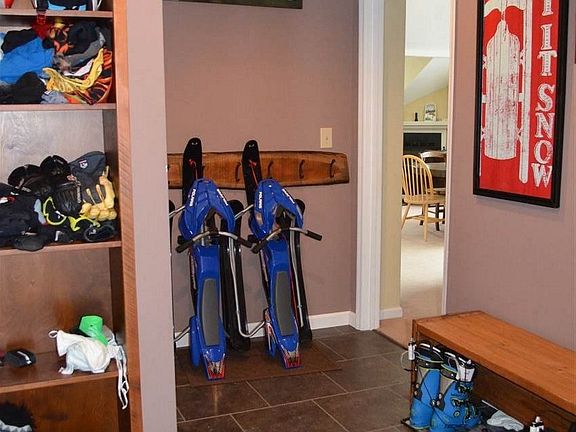 Winterplace on Okemo Mountain! Unit E-306. Located just a stone’s throw away from the slopes, you can enjoy views of the chairlift from your window while you sip a hot drink! This sunny top floor end unit boasts mountain views and easy access to the trail. The main living and dining area features a spacious open layout with vaulted ceilings, dormer and an abundance of natural lighting. Closets have been upgraded with beautifully crafted sliding barn doors, reclaimed and custom-made by a Vermont master craftsman, complete with iron hardware and built-in shelving. Other upgrades include a fully renovated kitchen and tastefully appointed bathrooms with granite countertops. A generous entryway with hand-carved wooden glove and ski racks offers plentiful space for storing outdoor equipment. The Winterplace indoor pool, tennis courts and BBQ/picnic area are close by.