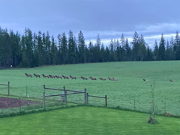 The fenced garden area overflows with produce from many years of production in its soil, along with apple trees. A wood shed full of split and stacked wood for next year isn't far from the outside accessed woodbox next to the wood stove in the basement. Old growth trees surround the house and an underground sprinkler system makes maintaining lush three-acre lawn a breeze. 31 acres of the land are in hay field, while 6 acres contain a fenced pasture. All of this is possible from a 281' deep, 30 gallon per minute well with a continuous pressure pump installed in 2021. There are two separate 5+- acre parcels on the south side of the property with the improvement sitting on a 30+- acre parcel. The pond is fenced with a dock and shed with views up Whitepine Creek.