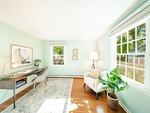 Welcome to this 4-bedroom, 2-bath Cape located across from Waushakum Pond, where neighborhood access makes it easy to enjoy boating, kayaking, and fishing, with beach access less than a mile away. The main level offers an open-concept layout with a fireplaced living room and an updated kitchen featuring stainless steel appliances, solid countertops, and a glass tile backsplash. Two bedrooms and a full bath complete the first floor, while the second level includes two spacious bedrooms, generous closet space, and another full bath. The lower level provides laundry, storage, and a finished bonus room perfect for a home office or playroom. Outside, relax on the newer composite deck overlooking the level, fenced-in backyard. Tucked away at the end of a quiet street, this home combines a peaceful setting with easy access to shopping, restaurants, and public transportation.