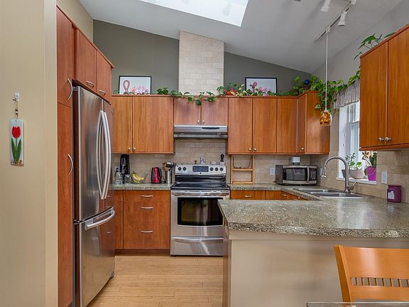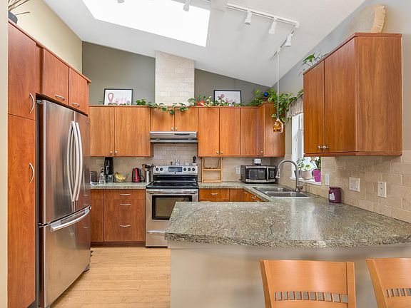 Best location in the complex is what this immaculate 3 bedroom, 2 bath CORNER UNIT with a private yard and stunning views offers. Bright and open layout with vaulted ceilings, two skylights and extra window bringing in an abundance of natural light. This home has many updates including Bamboo H/W flooring, kitchen upgraded with added cabinetry, under cabinet + LED lighting, new one-piece counter-top, stone back-splash and Samsung S/S appliances. Double garage with built-in shelving, added trim, faux wood blinds, bigger backyard than a lot of the other townhomes in this complex, and cozy gas fireplace are just some of the features. Enjoy AMAZING mountain views and a coveted green space location that's walking distance to everything. OPEN HOUSE SATURDAY, APRIL 6, 12 - 2pm!