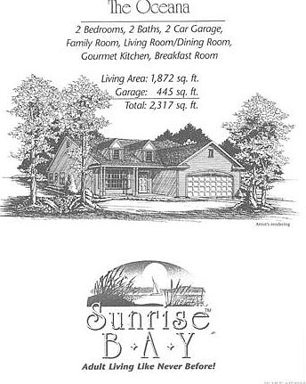 Upgraded Oceana home in Sunrise Bay a 55 and over adult community. Oak floors in lower level family room, living/dining room, bedroom and hallways. Ceramic tile in kitchen/sun room and bathrooms The second floor Study/Bedroom has wall to wall carpet with large closet and a full bath. This home has two car garage and also has a full size basement. There are floor plans for Oceana Models in the picture section of the MLS for your review.