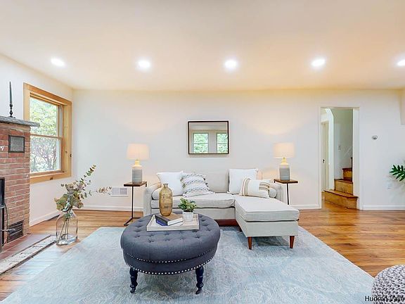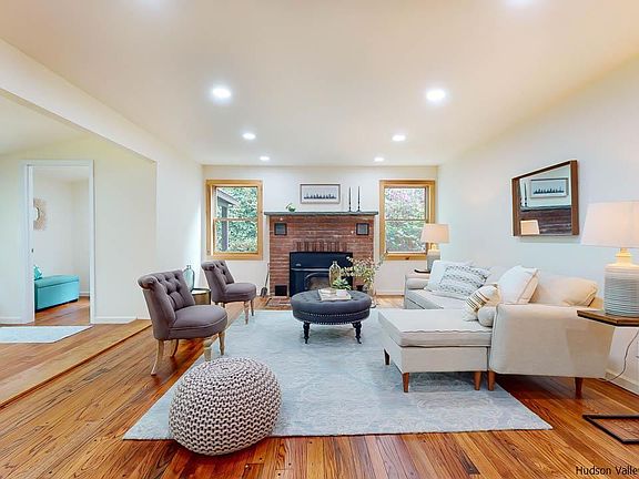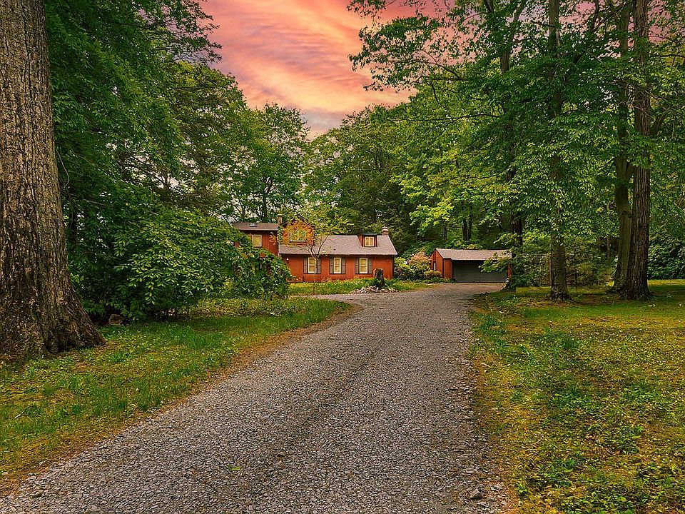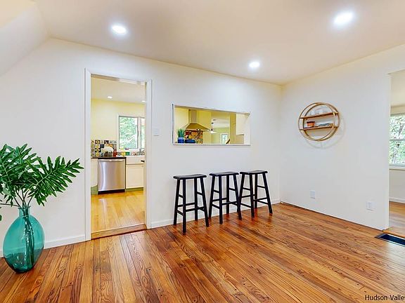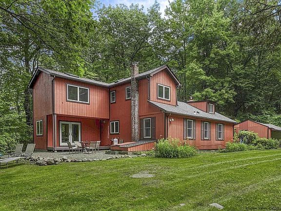 This unique Catskills contemporary has a warm, wonderful, welcoming vibe that requires a visit to truly appreciate. Set on a wooded acre off a winding country road mid-way between the villages of Woodstock and Phoenicia, it's in the perfect spot - you can breakfast in Phoenicia, spend your day in Catskill Park, and go out at night in Woodstock. This home offers plenty of room (2,394 square feet) and privacy. Originally built in 1949 it was recently renovated with contemporary farmhouse flair and offers 3 bedrooms, 2 baths, an office and a den (both of which can be used as additional bedrooms or guest bedrooms), a country kitchen, dining room, separate laundry room, and an open living room and breezeway area that have been tied together for space and flow. The kitchen, the center of the first floor, is a wonderful place to cook, with beautiful wood countertops, a wide galley layout, tile that serves as art, and easy access to the living room and dining room. Game nights, movie nights, cocktail parties and dinner parties are a delight to host here. There are two stairways to the second floor that lead to warm, inviting bedrooms and the office. The two stairs combined with the clever layout create a feeling of cozy tranquility no matter which room you're in. There's space for all your toys and hobby supplies in the garage and the seasonal views of the mountains and the Esopus Creek could be made year-round with some clearing! Come visit this mountain escape - we promise you'll want to stay. Seasonal views of the mountains and the Esopus Creek could be made year-round! Centrally located, just minutes to the Rail Trail in Boiceville, Phoenicia, Woodstock and easily accessible to Kingston. 1.42 acre lot next to this property is available to purchase alongside for $664k combined, bringing more privacy and a total acreage of 2.35