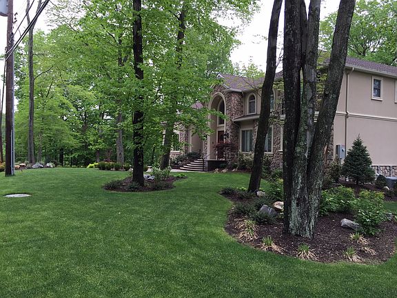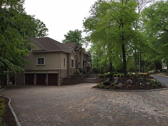 A colonial custom home with fully finished basement, 3 car garage, first floor master suite, guest bedroom, and a custom built cherry wood panels office, second floor master suite and 2 more bedrooms. Stucco/ Stone facade with fully landscaped yard that features a heated brick pavers driveway, 2 lounge areas (one of them TV lounge) in the backyard, brick oven, and built in kitchen. The house is fully automated, has full lighting control, home server, custom network, sound surround system, surveillance and security systems that cover all openings in the house. The basement features a full custom wet bar, gym, sauna, and a custom wine room. The custom kitchen provides a center piece in the house, that is balanced with a huge fireplace across the open floor. The house features custom moldings, hard wood floors on 1st and second floors and all staircases, custom wrought iron railing, balconies off of every bedroom overseeing Pascack Brook, and patio deck off the kitchen.
