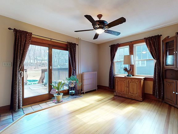 Extremely well maintained Cape Cod styled home with lots of character and charm. Great rustic styled home with lots of major upgrades including newer roof, windows, 10 year old furnace with indirect hot water heater, brand new water main and "Nail Tight" cedar shake styled siding. Wake up and relax on your huge front porch or enjoy your afternoon on your large back deck overlooking above ground pool and level back yard. Gleaming hardwood floors throughout main and upper level, bright kitchen with fresh paint, wide wood moldings, wood staircase and so much charm. Spacious and dry unfinished lower level perfect for storage with great work bench for the handy man. Additional storage in large shed and detached garage with loft. All city services, water and sewer for easy convenience. No plaster walls, PVC plumbing, cedar closet, efficient gas heat. Attic fan and window air conditioners included. Close to town location, in close proximity to schools, restaurants, shopping, parks ect.. Great starter home with level lot.