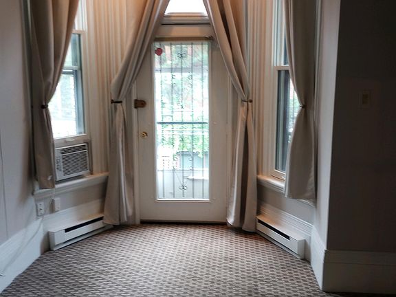 Available now, Beautiful parlor one bedroom unit with original fireplace mantle, ceiling detail, wood floors and high ceilings. Open floor plan with large kitchen and living room/dining area. French doors lead to a well proportioned bedroom with carpet. A large bathroom has a pedestal vanity, step-in shower a full washer and dryer and large linen/storage closet. Juliet Balcony. First, Last & Broker Fee. No Undergrads. Includes Water & Sewer No Pets Water & Sewer included. Tenant pays for Heat, hot Water & electric No Undergrads/ No Pets/ No Subletting.