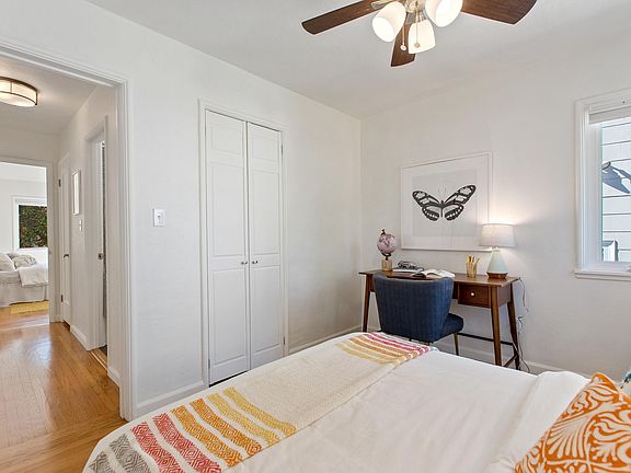 I have an unfurnished room in the a nice 2 bed 1 bath recently renovated house available for rent. The house has a backyard, laundry, parking, garage, a separate dining room, and an updated kitchen. The home is located in Bushrod, just a 10 min walk from Ashby bart, 5 min from Bushrod park, 20 min to Berkeley Bowl, 5 min to South Berkeley Farmers Market, and close to my favorite Hoi Polloi Brewery! You would get to rent the back bedroom with a view of the backyard. I'm a 30 year old POC man who works from home in healthcare. I enjoy hosting friends, cycling, backpacking, gardening, and more recently surfing! I'm looking for a thoughtful and considerate roommate who values open and direct communication. I like to keep the place generally clean and have things put away. The rent is $1600/mo with water and trash included. Note: I included some pictures of the room when it was furnished to give you an idea of what you can fit in there. Landlord pays for water and trash. All other utilities are split by tenants.