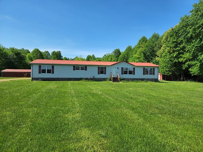Come enjoy life in the country while only a short drive to town and all its conveniences. This 4 bedroom 2 bath manufactured home on permanent foundation is situated on 5.19 acres. Featuring 1, 680 sq ft, you will love this split floor plan home with large living room and dining area, separate den off of the kitchen, spacious primary bedroom with en suite bath and additional sitting area and so much more! Outside the home, you will find a detached garage along with an additional storage shed. If you are looking for a home with land or space for a mini-farm, you will definitely want to see this one. This home has so much potential with just a little TLC. Call today before this one is gone!