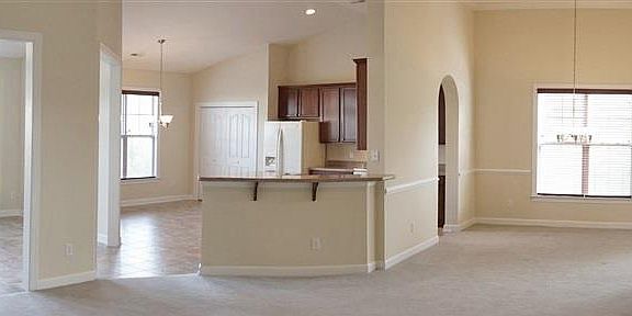 - Split Bedrooms, Window Treatments, Breakfast Bar, Bedroom on Main Level, Breakfast Area, Entrance Foyer, Kitchen Island, Solid Surface Counters