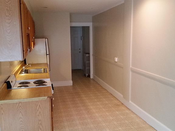 This one bedroom has kitchenette, large living room, full bath, hardwood floors. Hot water is included in rent, and heat is efficient natural gas, paid by tenant. Private trash (no blue bags!), coin-op laundry. Parking available. NO DOGS No smoking