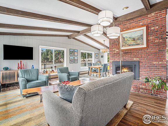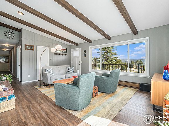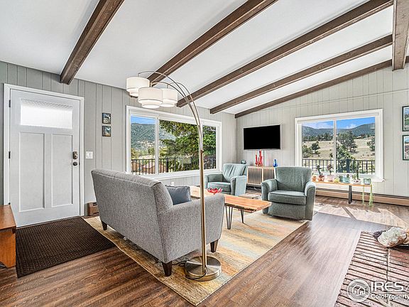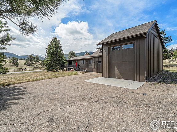 Experience the charm of this beautifully updated Mid-Century ranch, set on a tranquil 1.17-acre lot in the sought-after Carriage Hills neighborhood. Enjoy serene living away from the hustle of downtown while benefiting from quick, easy access to Rocky Mountain National Park via convenient back roads.The home features a host of modern updates, including newer high-efficiency appliances and a state-of-the-art boiler/water heater. Expansive Anderson composite low-e windows throughout the first floor offer breathtaking views and an abundance of natural light. The large bonus room above the garage is a versatile space with hardwood floors, a vaulted ceiling, in-floor radiant heating, and elegant wood Pella windows.Additional highlights include a warm, attached two-car garage and a heated RV garage designed to accommodate the largest camper vans, measuring 25 feet deep with a 12-foot tall door. A comprehensive professional inspection has been completed, with all action items addressed.The spacious master bedroom features an en-suite bathroom, complemented by two additional bedrooms. Outdoor living is equally impressive with a deck, back patios, and ample space for relaxation and entertainment. This home offers the perfect blend of modern comfort and scenic beauty.