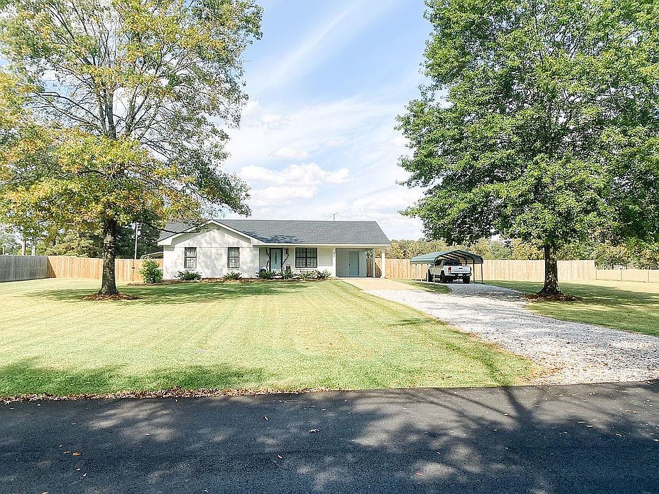 This recently updated, immaculate home is located 7 miles away from MSU & 2 miles away from EMCC. Quick access to highway 82 provides convenience for Starkville, West Point & Columbus! This home has been completely updated, with no detail overlooked!! Recent Updates: Brand New Fenced in Yard (2022), Brand New Roof (2022), Exterior & Interior Paint, Flooring & Baseboard Throughout, Light Fixtures Throughout, Updated Kitchen with Butcher Block Countertops, New Backsplash, Vent Hood, Bar Seating, Bathroom with Shiplap & Granite Countertops… & MORE! Included: Refrigerator, Curtains (2021), Smart Lights (compatible with Alexa & GoSund), 2 Large Outdoor Awnings