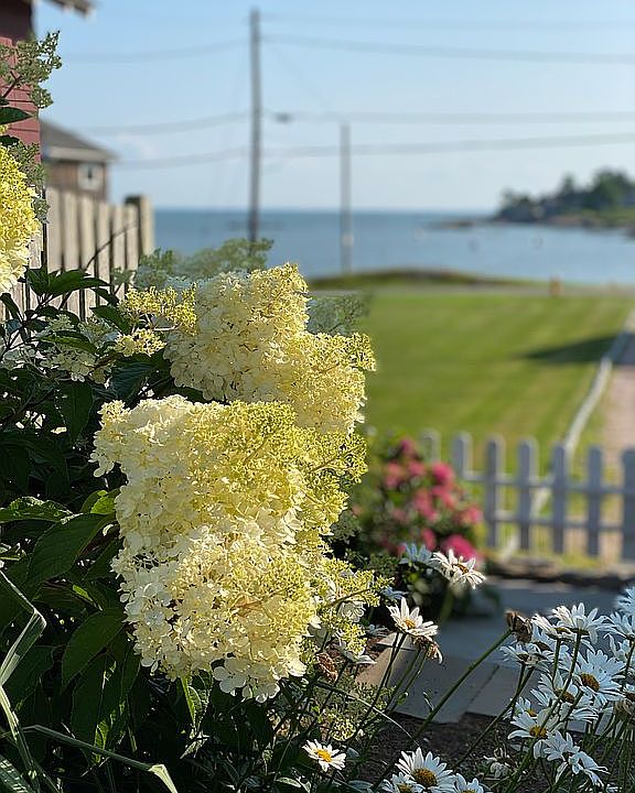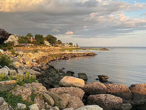 Beachside cottage with incredible water views and beach rights, featuring a renovated kitchen, new bathroom with Italian tile, hardwood floors, stone fireplace and mature, tiered, perennial gardens.