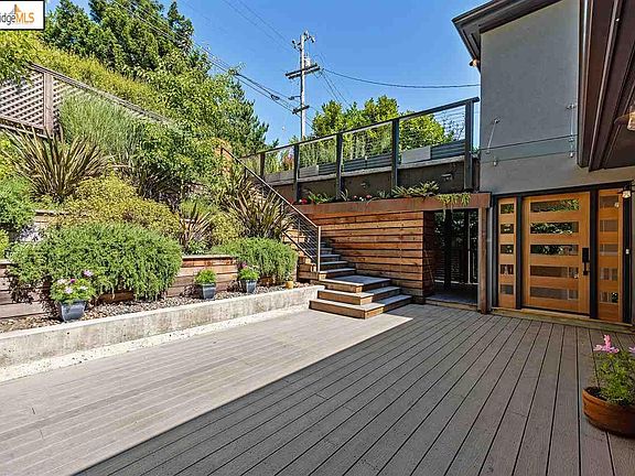 Enjoy elegant luxury in this impeccably constructed Berkeley Hills home. Completed in 2017, this "Modern Craftsman" features such classic elements as handcrafted wood railings, inlaid floors, and solid wood cabinets with all the benefits of nearly new construction:up-to-date seismic engineering, full sprinklers, energy efficient fixtures and more. Open and bright living spaces overlook serene SF Bay views. 4+ bedrooms, 3.5 baths on three levels. The lower level could make a fab master suite, family room+guest room, or work-from-home sanctuary. It could also easily be converted to an ADU with its own entrance. High-end and high-tech materials and workmanship throughout, including 1/4 sawn oak floors, natural blue quartzite counters and cherry cabinets in the kitchen, custom tile in all the bathrooms, solid wood doors and trim throughout. Shown without staging to let the spacious rooms, clean lines, large windows, great details and quality materials speak for themselves!