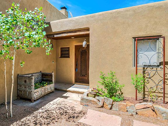 Lovingly maintained single family home on the northeast side of Santa Fe. This passive solar, two bedroom, two bath, office, and a one car garage is on almost 1/4 of an acre. Fully remodeled 15 years ago with exterior/interior doors from La Puerta, reclaimed beams, and flagstone floors. A fenced back yard with mature landscaping and full drip irrigation system plus a newer in-ground hot tub to enjoy the starry nights. Nice views of Sun, Moon and Atalaya Mountain. Stainless appliances include a new range/oven and hand crafted wood cabinets. Two kiva fireplaces, nichos, high ceilings in the living room, mini splits plus a new garage door in 2019. The master bedroom has a bonus sitting area and closet systems are in both bedrooms. The second bedroom has a quaint, loft nook. This property is conveniently located between Hyde Park Road and Alameda, near Palace Avenue and Canyon Road! Don't miss this hidden gem.