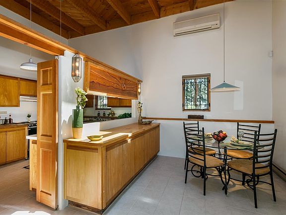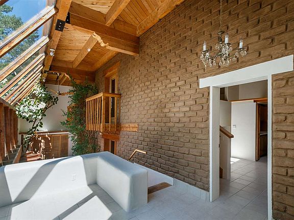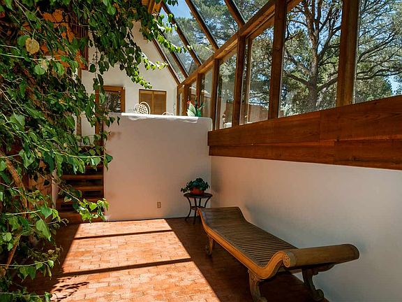 Close to downtown on Gonzales Road is an eclectic multi-floor three-bedroom, three-bath passive solar delight. Direct access into the wonderful two-story greenhouse that could be a gardeners delight. Upstairs includes a fireplace, living area, study and a cozy little room that could be used as a private study or library. Wood floors add to the charm of exposed post and beam construction along with exposed adobe bricks. Private master suite with great natural light is back and away from the other bedrooms. Brand new roof, new paint and lots of cosmetic repairs already done so this one can be moved into tomorrow!