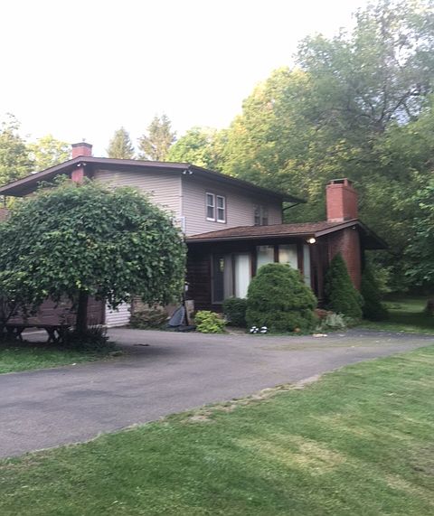 Call for showing to see this two story home on almost 3 acres. New low price and many new updates. New kitchen ceiling with recessed lights. Close to town with an out of town feel. 4 Bedrooms with built ins and new windows. Bathroom upstairs as well as one on the first floor. Large cedar closet. Spacious living room with gas fireplace and lots of windows. Family room, kitchen, dining room, large entry with ceramic tile floor includes computer area. Beautiful scenery includes pond with Koi and bluegill. Large two car garage with additional storage areas. Large two stall shed/workshop for storage, exercise or game area with electric, also gas and water hookups.
