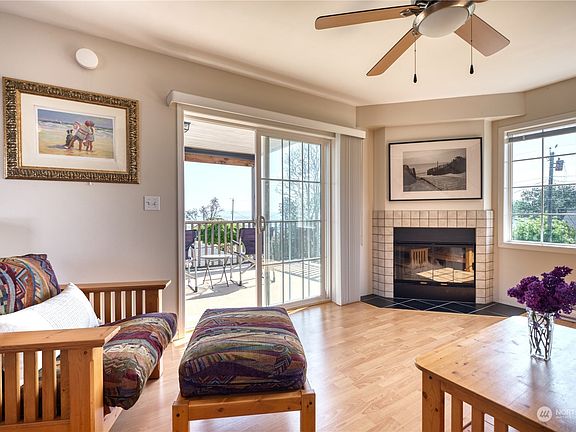 A special offering on the south side w/ ocean and island views on one of the most desirable streets in Point Roberts. Four seasons home with beach rights that features 3 beds + den, 4 baths, and an option for a kitchenette. Wood-burning fireplace in the heart of the home, with sliding doors onto a covered balcony. Private layout, each bedroom with its own bathroom, and a loft with views. Rooftop sun-drenched balcony with panoramic vistas and additional ample deck space off of the main. Covered attached carport and meticulously maintained yard with mature landscaping. The beach is waiting for you!