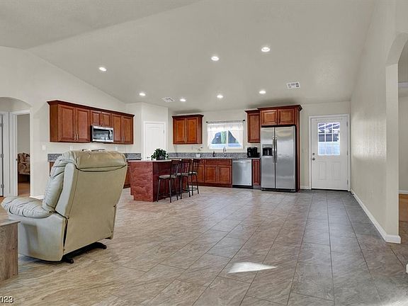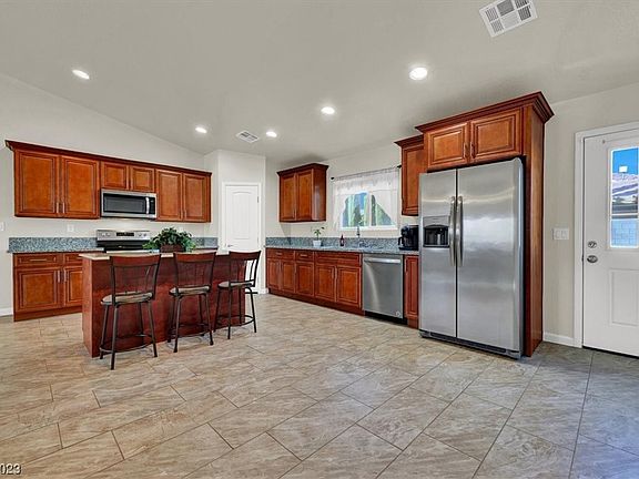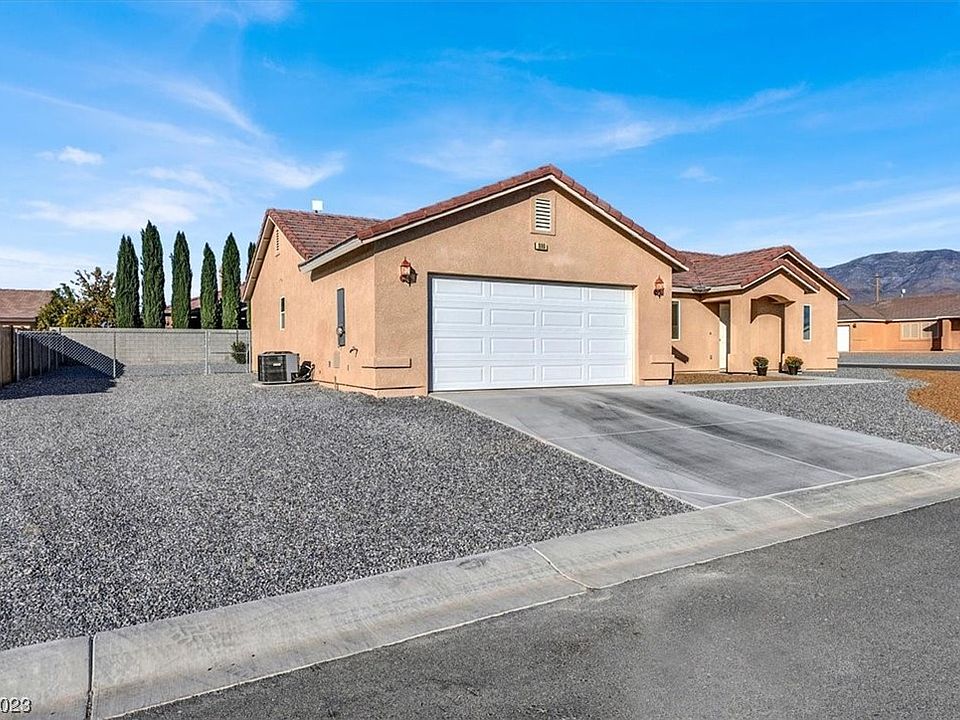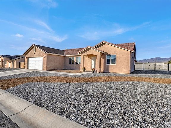 Welcome home, this beautiful 2019 single-story plan features 3 bed/2 bath located on the North end of Pahrump w/close proximity to Hwy 160 & just a short drive to/from Vegas. With NO HOA; this huge open concept with lots of counter space and an island added to entertain friends and family. Tile flooring throughout home & bathrooms with carpet in the bedrooms. Primary bedroom has double sinks, walk-in closet, & linen closet. The backyard is fully fenced for your own dogs and is ready to make your own paradise. RV gates already installed. Large 2 car garage. You can't beat the spectacular mountain views! This home is move-in ready!