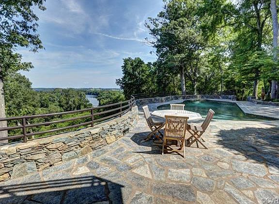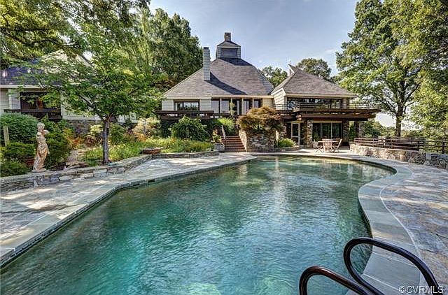 James River Views for miles from this private 18 acre estate with gorgeous pool! Outdoor recreation paradise! New lifetime roof and freshly painted cedar siding make this home look new! Architect designed contemporary with vaulted ceilings, open interiors, 3 fireplaces, hardwood floors, including gorgeous new hardwoods in the first floor owner's suite. Commanding eastern and western views of the James River from its position on the highest bluff in Goochland. Residence features high, vaulted and tray ceilings, open interiors, lots of glass to maximize light. First floor living is easy with a luxury owner's suite, connected bedroom or study with attached bath plus a 1st floor guest suite. The living & dining rooms are open with fireplace. River room has views on 3 sides. Terrace level has recreation room, wine cellar, screened porch, expansive stone patio and pool. Beautiful pond and pasture. Ideal hunting and fishing retreat just 17 miles from Richmond's West End.