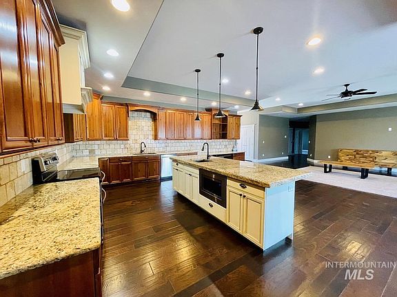 Gorgeous 4 bedroom, 2 bathroom home in highly sought after neighborhood in Heyburn. Close to schools, walking path and spectacular Snake River. Spacious, open concept kitchen with all the upgrades. Tons of storage, large laundry/utility room and enormous 3 car garage with cabinets, shelves and workout area. The master suite is remarkable with tiled, walk-in shower, separate bath and double vanity. Custom upgrades around every corner . . . call an agent today!!