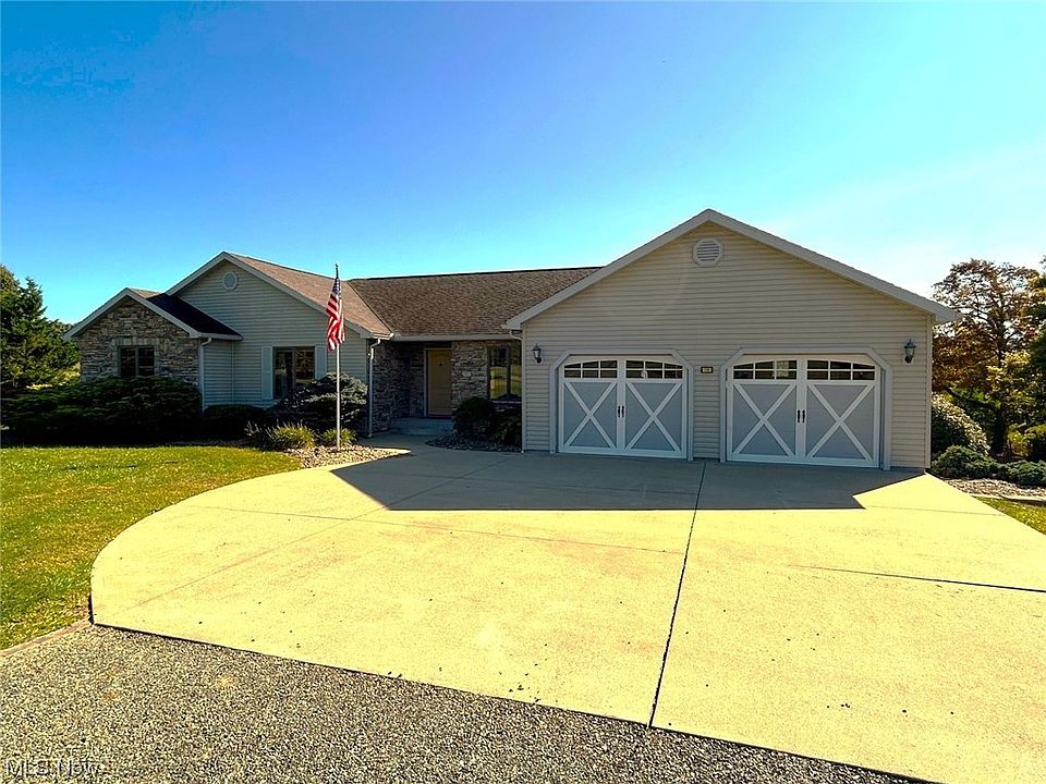 Custom one owner, ranch home, first time offered on the market. This home sits on a beautiful 6+ acres with a portion of it wooded. Home offers entry area to formal dining room or an office. Family room, eat-in kitchen combined to make a 16'x39' open area. Kitchen offers custom maple cabinets, Corian countertops, plentiful cabinets with abundance of countertop space including island with bar stool area and glass door leading to an oversized back deck overlooking your spacious back yard. Master suite offers full bathroom and has a 7'x6' walk-in closet. 2nd full bath offers a walk-in shower and two additional spacious bedrooms. Upstairs offers plentiful closets space, including pantry area. Laundry room off kitchen leads to garage with an oversized space of 12'x21' for workshop or additional parking space and heated. Lower level offers an additional 2100 sq ft of space ready to be finished into additional bedrooms, rec room and includes French doors to lower level patio to the back yard. Lower level offers a finished full bath. Outdoor wood burner and home also set up to run off of propane heat, two water heaters, 3' interior doors, central vacuum throughout home, floor joist trusses, outdoor shed and so much more. This home has been meticulously maintained and cared for, ready for its new owner.