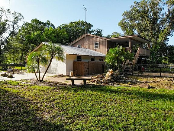 Sarasota Country living at its best & GREAT opportunity to own this amazing property with incredible potential to bring in A LOT of $$! Bring your horses or lease out the stalls it has a separate entrance and driveway to horse barn, tact room & storage.make it an income-producing property. The main house downstairs has granite counter tops updated kitchen with exposed beam, the master bedroom and guest suite are both downstairs with XL closets, The master bath is currently being renovated (photos to come). Living & family room plus additional office/man cave, 2 AC units about 2 years old, newer metal roof. Upstairs you have a loft with access to the balcony overlooking the large pool and 3 additional bedrooms, loads of storage, and a full bathroom. plenty of space to customize it and make it your dream home (3,416 under air), some updating needed but the potential is infinite. The guest house has 2 bedrooms, a full kitchen, and bath. It has been recently updated with new laminate floors, paint, baseboards, light fixtures, fans, reverse osmosis system, and all the ductwork replaced. Completely detached from the main home with separate entrance, covered patio, 2 stall barn with hayloft, and tack room. Guesthouse could be another source of income. Additionally, a 16 stall barn with an RV garage hanger in the middle with multiple rooms and haylofts and the stalls are larger than average opening from the front & the back. It's on just over 5 acres with multiple pastures. There is also a pig pen with water and electricity. Lots of mature oak trees through the whole property with plenty of shade.