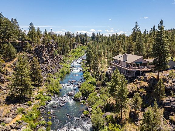 A rare opportunity to own this riverfront home with spectacular views sitting on the scenic Deschutes River canyon. Nestled in a quiet, heavily treed .60 acre lot in a NW neighborhood just minutes from downtown. This beautiful home has had several updates and is very comfortable. With a floorplan capturing light and river views, two master suites, an open kitchen, large main floor, and sprawling decks that are perfect for entertaining! Access to trails and fishing right out your door.