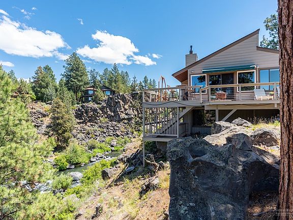 A rare opportunity to own this riverfront home with spectacular views sitting on the scenic Deschutes River canyon. Nestled in a quiet, heavily treed .60 acre lot in a NW neighborhood just minutes from downtown. This beautiful home has had several updates and is very comfortable. With a floorplan capturing light and river views, two master suites, an open kitchen, large main floor, and sprawling decks that are perfect for entertaining! Access to trails and fishing right out your door.