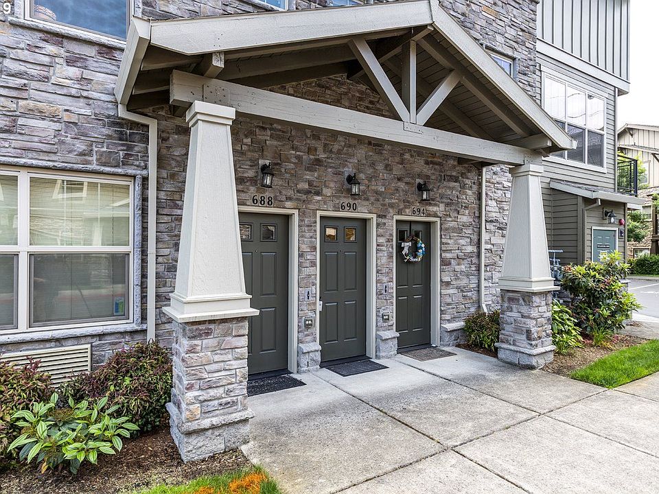Spacious open floor plan w/many windows & natural light! High ceilings on main & vaulted in bedrooms for light, airy feel. Gourmet kitchen w/granite, stainless appliances & large island. Convenient location! Take park-like path for close & direct access to Quatama MAX station. Enjoy sparkling pool, clubhouse and gym. Lush grounds and play structure to keep everyone happy. Generous-sized deck for outdoor living.