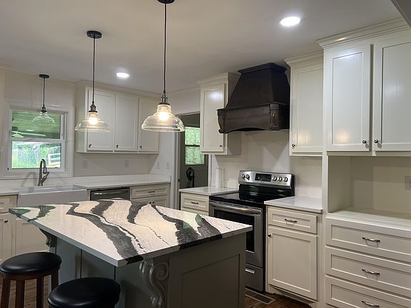 Remodeled ranch style home in a great neighborhood! Kitchen has shaker style cabinets, beautiful island, quartz and granite countertops, stainless steel appliances and a farmhouse sink. Wood burning fireplace in dining room. Original refinished hardwood and tile flooring. Partial walk-out basement. Barn for storage or animals, nice large pond on over 3 acres.