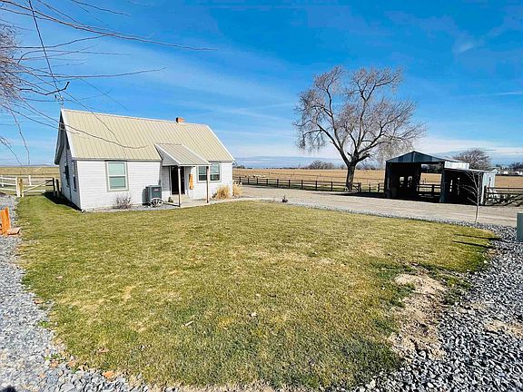 Country living 5 minutes from town on this remodeled 3bd 2.5 bath 1848 sqft home! New wiring, plumbing, kitchen cabinets and butcher block counter tops, new sheetrock and interior paint and flooring. Master bath with walking tile shower, dual vanities. New electric furnace and heat pump and all the ducting. Home sits on 1.9 acres with 2 acres water right for the pasture with new irrigation lines. Has detached 2 car parking and plenty of room to park your R.V and all your toys. New fence all the way around the back yard with under ground sprinklers and the property has all new fencing for livestock. 22X32 shop with new roof ,cement floor and new electrical and 220v power. Garden area with drip line for your summer green thumb!