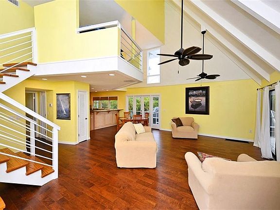 You will Love this Private Island Hideaway that sits on a Large Waterfront lot on Longboat Key. This property is truly a Boaters and Sport Fisherman's Paradise! This 2 Bedroom 2 Bath Pool Home with direct access to The Intercoastal Waterway has so much to offer. Once inside you'll find it light and bright with solid wood floors, large open living space with cathedral ceilings, updated kitchen with stone counters and stainless steel appliances, wood burning fireplace, loft area overlooking the great room, nice master suite and more. Once you step outside the main living area you'll enjoy gulf to bay breezes on the large screened in wraparound deck, there is an open covered deck off the master with access to a captains rooftop deck with expansive views of Sarasota Bay to downtown. This property also offers an oversized screened in pool and spa area for relaxing and entertaining. Bring your boats and water toys! There is an all weather Ipe wood dock equipped with water, electric and 2 boat lifts! Open private outdoor living space, plenty of parking on the pavered drive, 2 car garage plus bonus space and hurricane rated garage doors. This is a great island deal that is ready and waiting for you!