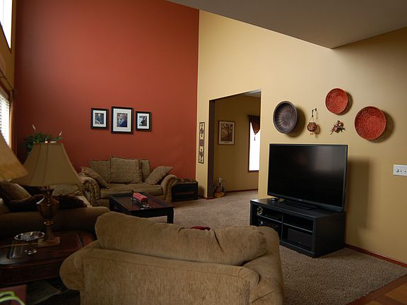 Beautiful 5 bedroom/3 bathroom/3 car garage. 2 story foyer leads into formal living and dining room. 9 foot ceilings on main level. Large and bright kitchen complete with 42 inch raised panel cabinets, large pantry and Brazilian cherry hardwood floors. Spacious 2 story family room with lots of natural light. Oversized bedrooms, large closets and an abundance of storage. Large master bedroom with sitting area and huge closet. Loft could easily be converted to 4th bedroom on upper level. 500+ unfinished sq feet in lower level remain for your personal touch. Large lot with pond and bluff views from the deck and patio. Invisible fence, irrigation, fire pit and garden space.