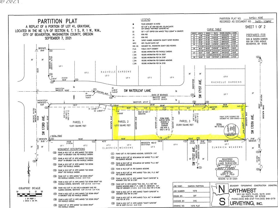 The final recording of 2 tax lots (parcel 2 and 3) partition has been finalized. That will leave up to 5 additional lots. Buyer will then need to go through the land use process to replat parcel 3 into 4 lots. Parcel 2 is one lot that is ready to build on now. Parcel 3 will take longer. Laterals, street improvements, sidewalks & curbs are in on parcel 2 & one lot for parcel 3. Buyer/builder to verify their own due diligence.