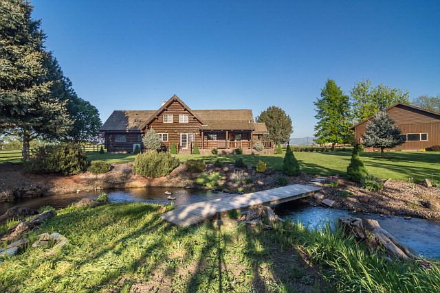 Gorgeous Views,Pristine & perfect for the Gentleman Farmer. Live in a home that feels like you are on vacation everyday! Watch the moon come up over the Mountain..Sit and enjoy coffee on wrap around porch. Little tooties would love to sit on walking bridge and feel the cool creek. Fenced and irrigated perfect for 4H projects. Big garden area tilled and ready to seed. Water rights have been maintained. Garage large enough for cars, boat and shop! Wonderful rock fireplace keeps home toasty warm through winter months. Deer, pheasant & frogs!