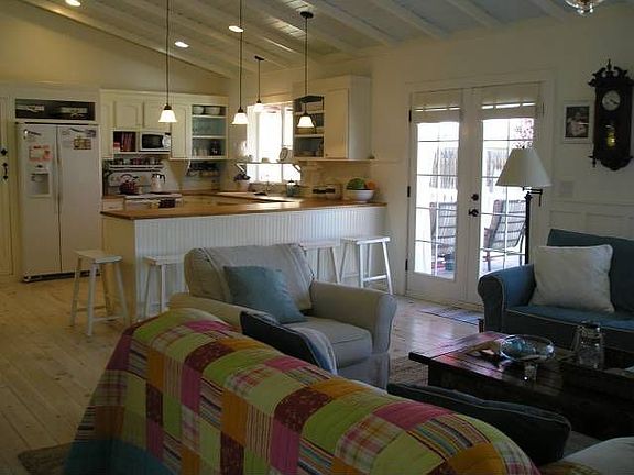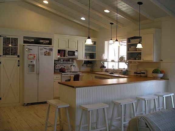 Cottage appearance with pine flooring thruout and tile in the baths. Vaulted ceilings, butcher block counters, wainscoating, pine ceiling. Part. covered deck, patio, fenced yard.