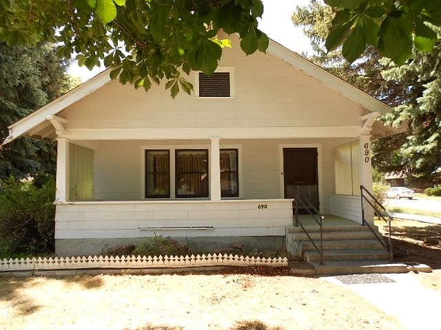 Charming front porch entry, with classic moldings & style, all wrapped up in this smaller, but very comfortable home in a central location -- close to everything! Broad living flows nicely into formal dining area through classic French doors. Kitchen has been updated, maybe mid 80's when a spacious and highly functional family room (could also be a third bedroom) was also attached to the rear of the home. Two adequate sized bedrooms plus central bath complete the main floor. Basement is smaller with laundry and 3/4 bath. A family room and small storage or office is located there as well as laundry hookups & storage area. There are two enclosed garages for great storage and vehicle housing plus one open garage, substantially enclosed.=. Maintenance free exterior and delightful original windows with storm windows help with increased energy efficiency. Yard is smaller, no water rights have been retained for this property. Mature yard provides great afternoon relief from the summer sun.