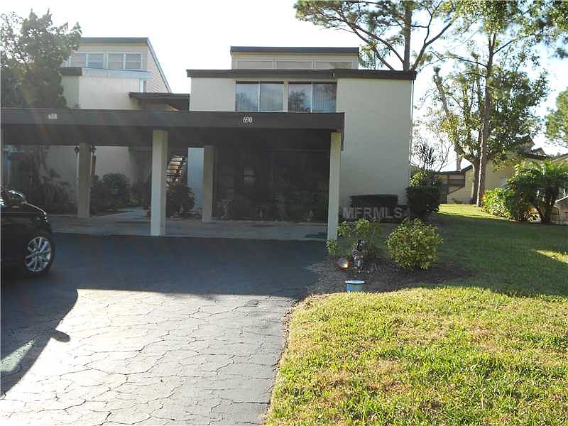 2nd Floor condo in delightful Bird Bay Village. Amenities include Heated Pools, Golf (option/semi private ),State of the Art Clubhouse, Fitness Center, Tennis Courts, Library with Media area, Craft Room, walking paths, boardwalk by nature preserve... adjacent to Legacy Trail for biking & hiking that runs 15 miles north and south. Unit has excellent light from cathedral ceiling. Unit renovated... new carpets in LR and 2 BDs, new tile everywhere else. New Kitchen backsplash, new paint throughout, new disposal, new closet shelving. Kitchen has breakfast bar (4 bar stools included), lots of cabinets. 2 Large Bedrms, 2 full baths, Mst bath has linen closet. Cathedral ceiling in great room lets in lots of great sunshine. Laundry on outside deck behind sliding doors. Views of greenbelt and golf course. Parking for 3 cars in your own driveway at your doorstep. Convenient to shops and 1 mile to historic downtown Venice and nearby beaches. Great rental history. Four-plex building.
