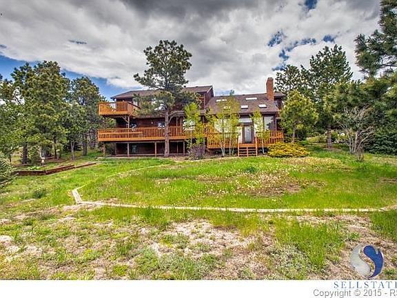 Large Colorado home, built for entertaining! Stunning setting on over .6 of an acre with mountain views, large trees and established natural landscape. Peaceful rock waterfall just off the front porch sets the tone in this serene Rocky Mountain home. 5 bedrooms/5 bathrooms/3 car oversized garage. This home boasts lots of storage, large bedrooms, vaulted ceilings and a kitchen perfect for entertaining, walks out to a massive 44x12 deck facing the mountains. Stay cozy near the wood fireplace in the spacious family room.